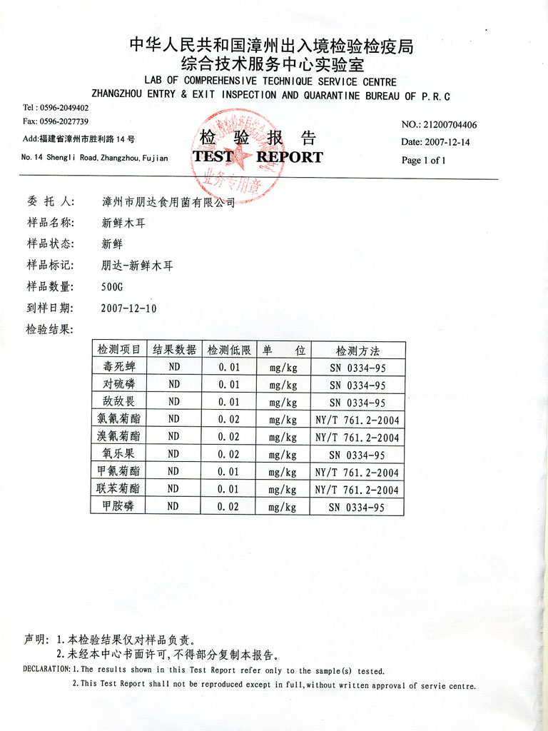 下一篇:新鲜木耳农残检验报告 2007-12-11