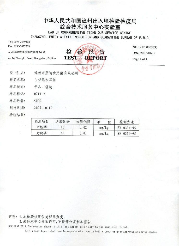 上一篇:白背毛木耳铅,总砷,水分检验报告 2006-12-03